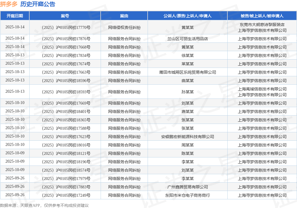 本站消息专业配资查询门户,根据天眼查APP显示专业配资查询门户,近日公布了一则上海寻梦信息技术有限公司作为被告/被上诉人的开庭公告,详细内容如下:
