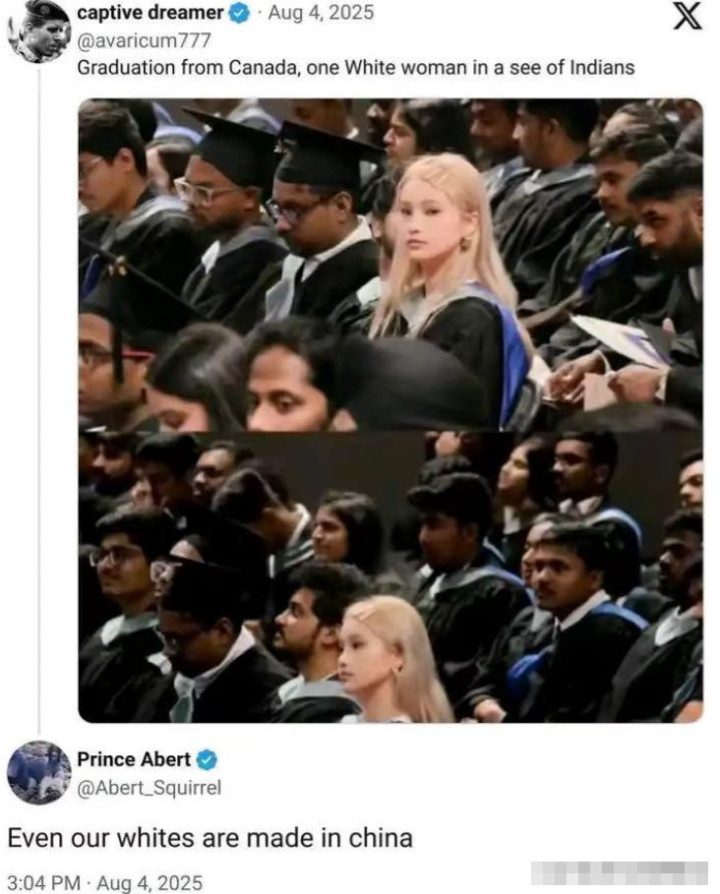 明明是加拿大某大学的毕业典礼,放眼望去乌央乌央的全是印第安人。
