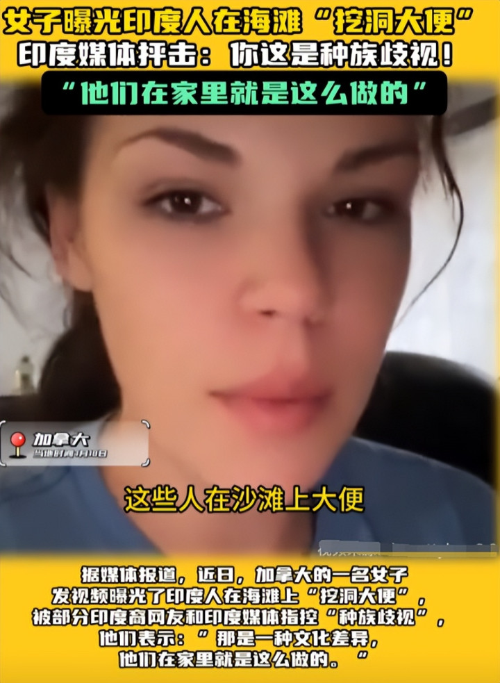 她直接发视频曝光了印度人在加拿大的恶行,在沙滩上直接挖洞排便。