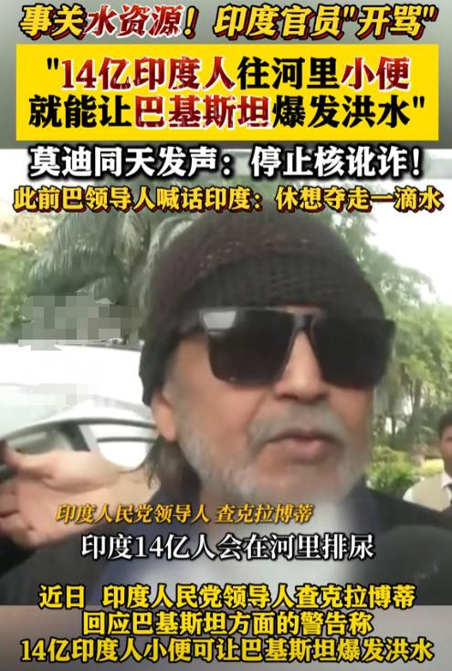 他直言印度要修建一座大坝,让印度的14亿民众在河里排尿。